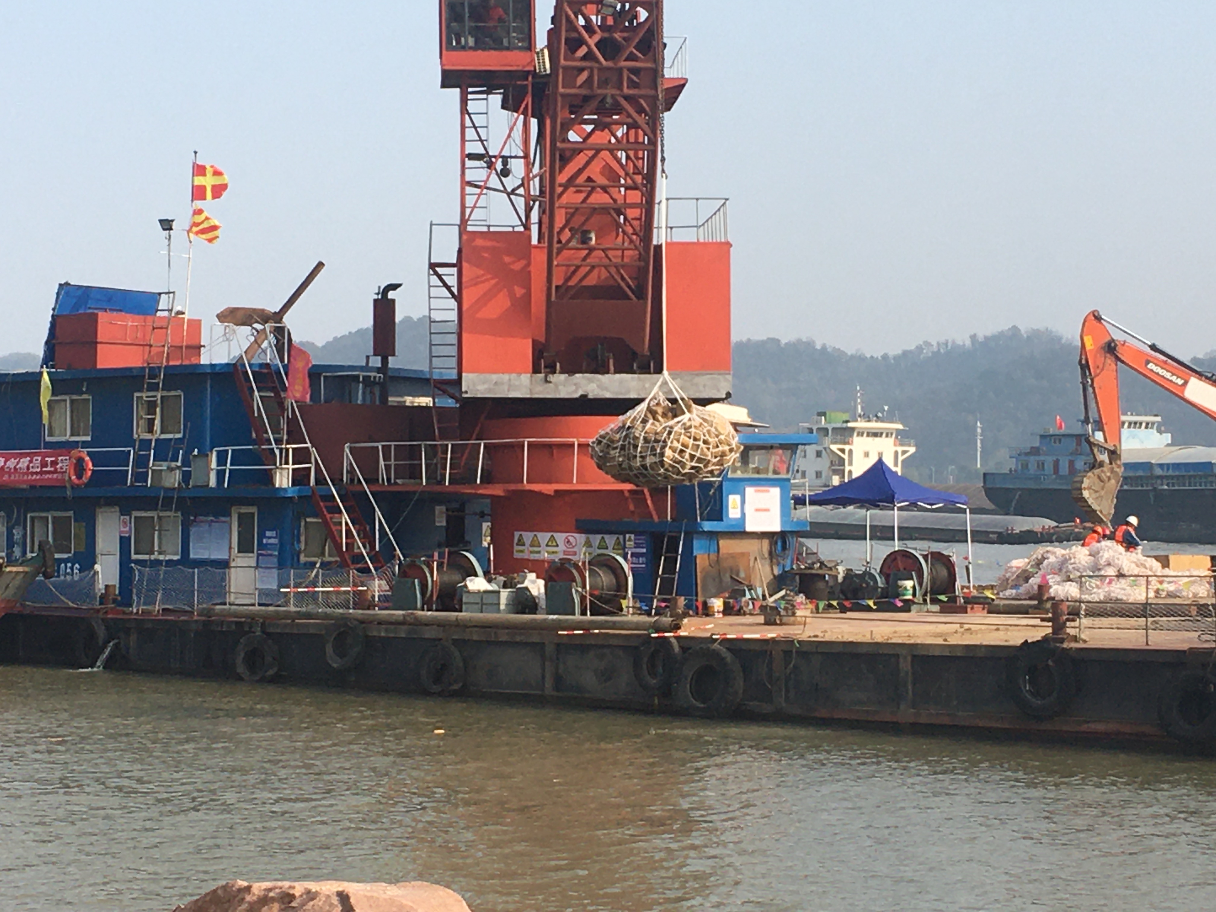 我公司中标长江南京河段八卦洲汊道河道整治工程监理二标段,工程主要内容:八卦洲右缘深槽防护工程上段及下段、八卦洲头右缘护岸加固工程。工程量是袋装砂抛枕100.25万m³,网兜块石21.76万m³,坡脚水下抛石10.88万m³。工程等级为2级。
